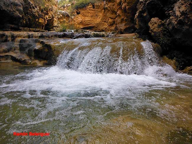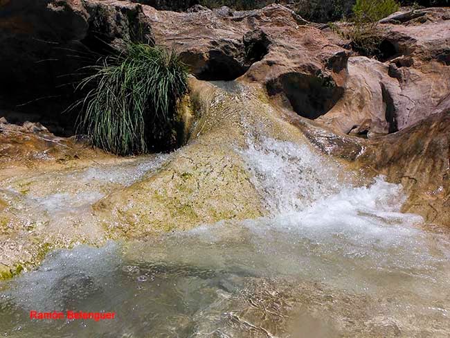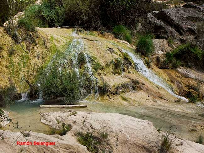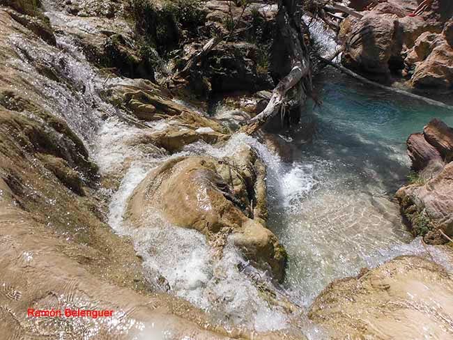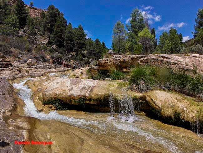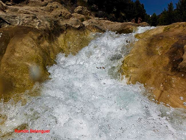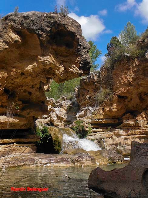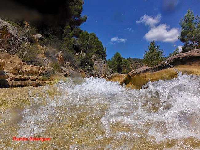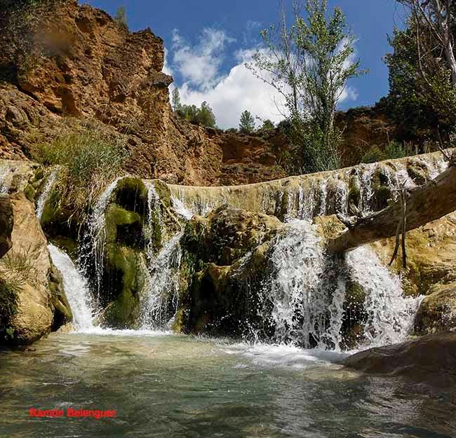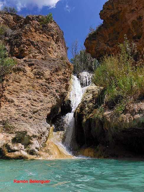 El nombre de Las Chorreras se debe a los "chorros" o "chorreras" de agua que con mayor o menor intensidad se pueden contemplar a lo largo del cauce del río Cabriel en este lugar a lo largo de un kilómetro y medio. Aquí el río nunca pasó de tener unas pocas brazadas de anchura, entre paredes rocosas encañonadas. Tal circunstancia obligó al Cabriel a retorcerse en este paraje en un caos de saltos y cascadas, generando cuevas laterales, pozas de color esmeralda al pie de espumeantes rabiones salvajes. Unas gargantas que parecen brotadas de un auténtico cuento de hadas. En menos de cinco kilómetros de recorrido el Cabriel desciende en esta zona más de 120 metros de súbito desnivel.