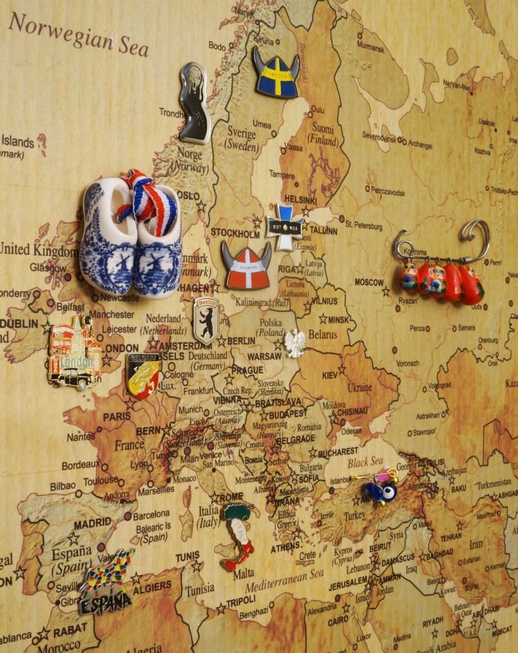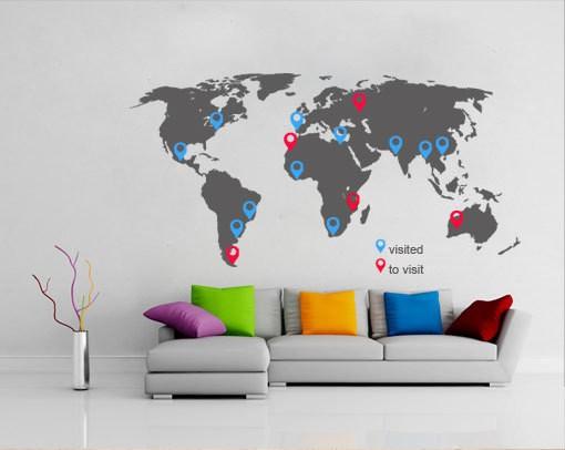 Un mapa muy original y perfecto para los adictos a los viajes, nos sirve para marcar los sitios que hemos visto, los que nos gustaría visitar y para planificar nuestras rutas en nuestros próximos viajes.
