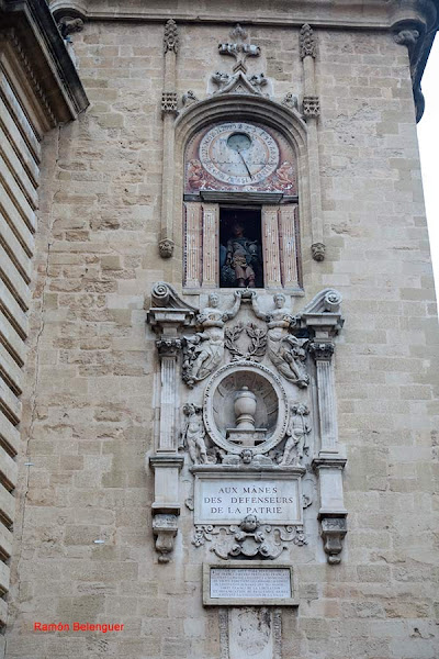 En la plaza, la fuente construida en 1755 tiene una columna romana en su centro y todos los días el mercado de las flores llena el lugar de colores. En ella nos encontrarnos con al torre del reloj, el ayuntamiento y La Halle auxgrains.