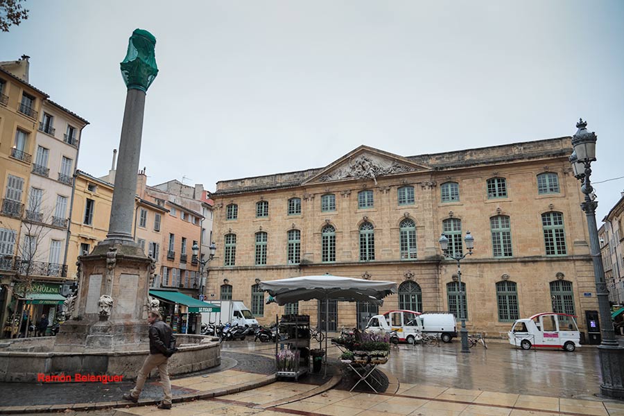 Sobre el antiguo emplazamiento del Parlamento de Provenza, fue construido entre 1825 y 1832 el actual Palacio de Justicia. En el interior destacan las elegantes columnatas de la sala de los “pasos perdidos” iluminadas por una gran cristalera. Este era el antiguo núcleo de la vida mundana hasta la creación de la Cours Mirabeau. Hoy aquí tiene lugar el gran mercado semanal y un rastro dominical.as fuentes de Aix-en-Provence