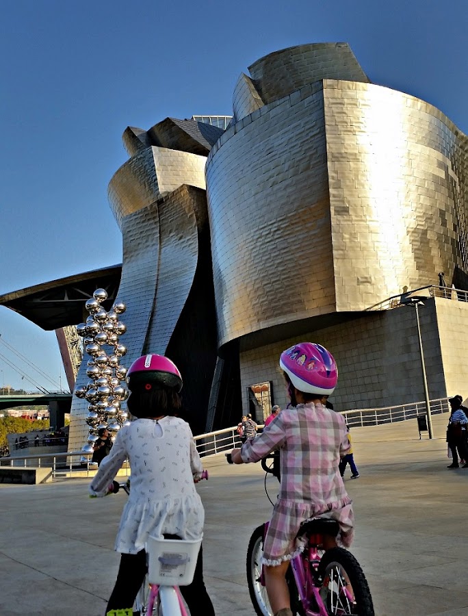 3- Ya sé que conoces el famoso Guggenheim y a Puppy el enorme perro que preside la entrada al museo, pero ¿que te parece si te digo que el museo tiene en temporada alta un servicio de guardería donde tus pequeños pueden estar jugando mientras tu ves la exposición? (entre 2 y 8 años, un máximo de hora y media, y cuesta 4 euros). Justo al lado del museo hay un área infantil donde podrán jugar y divertirse.