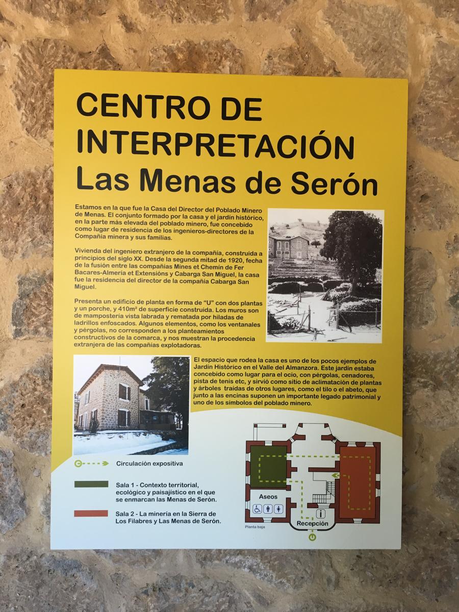 Es imprescindible visitar el Parque Forestal de Las Menas, situado donde estaba la casa del Director General, además de ver la vegetación típica de la zona y disfrutar de un parque infantil, está el Centro de Interpretación Las Menas de Serón. En él podréis conocer el efecto que tuvo el hierro no sólo en esta poblado sino en todo el Valle del Almanzora, en la línea de ferrocarril Guadix- Almendricos (Vía Verde del Almanzora) y en el puerto de Águilas (Murcia), donde se embarcaba el mineral.