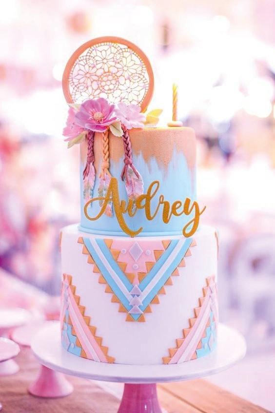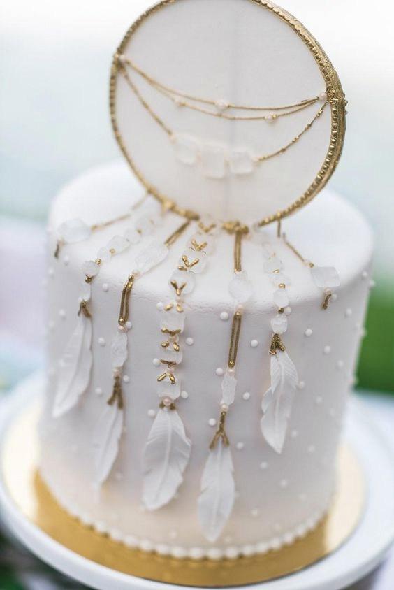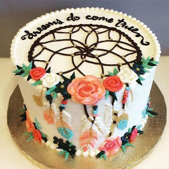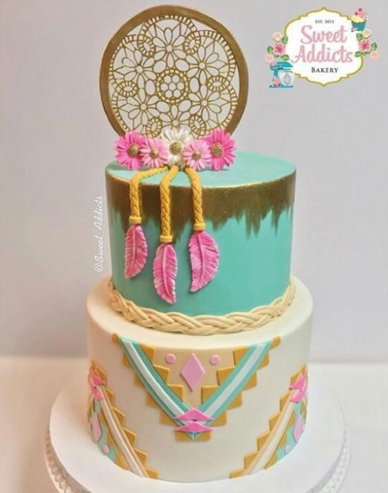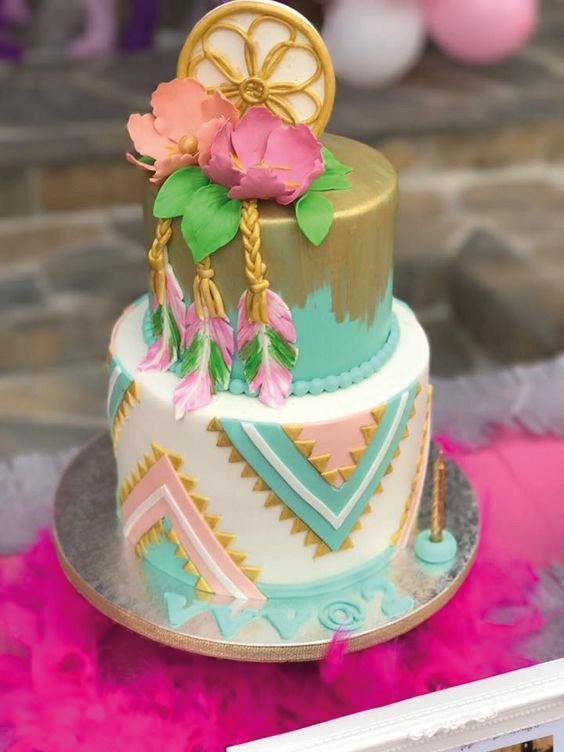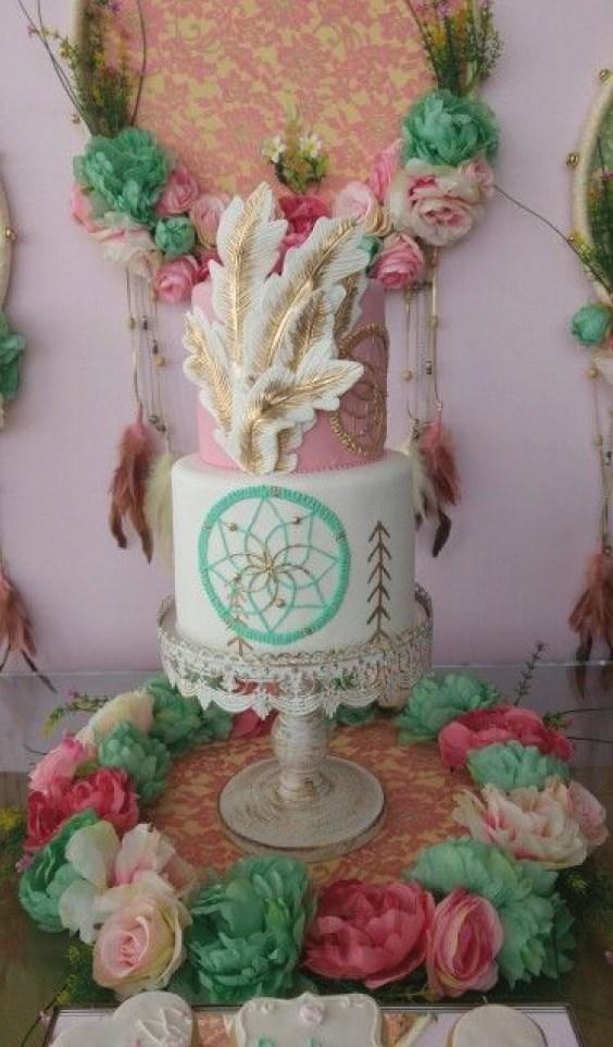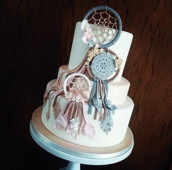 El estilo Boho chic ya es tendencia en decoración tanto en el hogar, como en ambientaciones de fiestas, eligiendo este tema especialmente para bodas o cumpleaños de quince. Si te gusta esta temática con aire bohemio, llena de atrapasueños, tipis, flechas, flores y muchas plumas, no te pierdas esta selección de tortas… las más lindas tortas con estilo Boho chic.