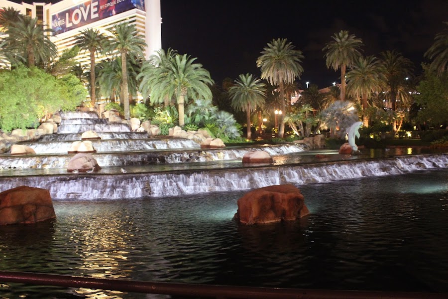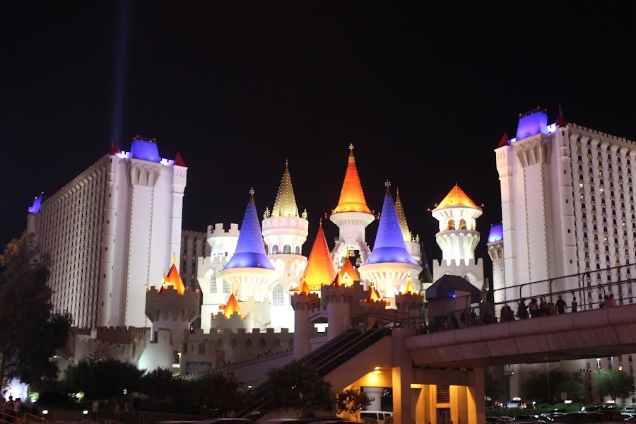Por la tarde, decidimos descansar en el hotel y arreglarnos para salir a visitar la ciudad, ya que las Vegas hay que verla de noche. Cogimos el tren que une los hoteles Mandala, Luxor y Excalibur, para que nos dejará en el hotel Excalibur y de ahí pasear por la calle principal de Las Vegas.