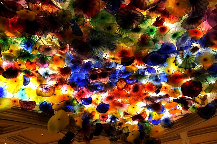 After that, we went to Bellagio Hotel to see its amazing musical show with the water. See the fountains moving at the rhythm of the music is amazing and the show let you without words. We entered inside the hotel where the decoration is wonderful. Its like being under the sea with the coral, fishes, oysters... I fell in love with this hotel.