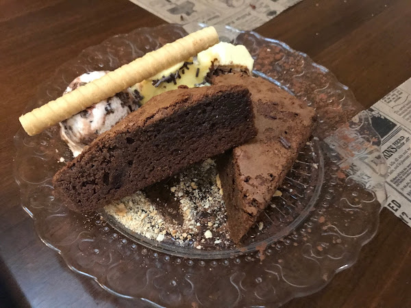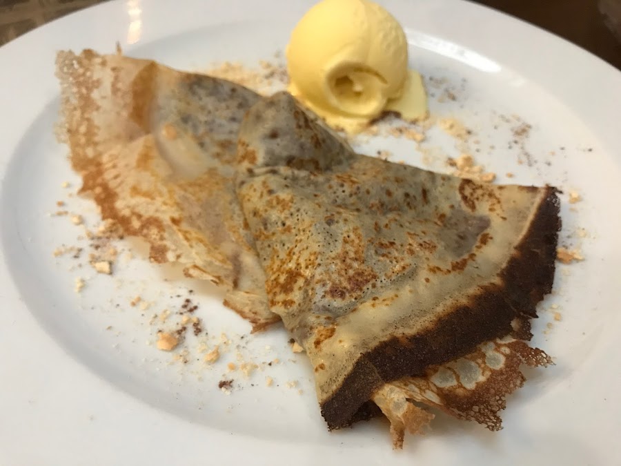 Por último, compartimos unos postres (que esta vez no olvidé fotografiar), aunque para mí fueron la parte menos atractiva porque ya sabéis que cuando yo disfruto de verdad, es cuando hay comida salada en la mesa. Aquí tenéis el crêpe y el brownie de chocolate: