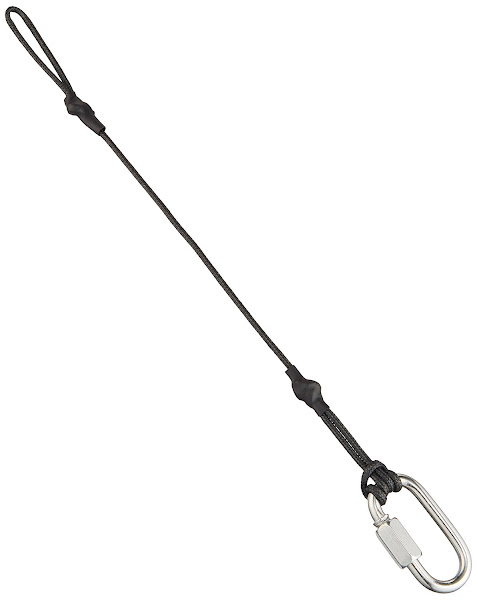 Pues con este pequeño cable, que es el que me decidió a realizar la compra de este modelo, está solucionado. Es un amarre de seguridad hecho con cordón Dyneema de gran resistencia (15 veces más fuerte que el acero) para mayor seguridad. Se engancha en la cámara en uno los de los anillos de la montura de la correa, y por el otro extremo en la propia correa mediante el mosquetón. Si falla el tornillo principal este pequeño cable te salva tu querida cámara con la que tan buenos ratos has pasado.