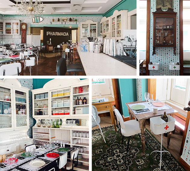 Este sitio se encuentra en el mirador de Santa Catalina. En el interior del museo de la farmacia (no podía ser de otro modo) este local está inspirado en un boticario antiguo, desde el botecito de aceite que te ponen como aperitivo para mojar con pan, hasta las cubiteras y todas las vitrinas que decoran el espacio. Un restaurante de tapas, que ahí lo llaman petiscos. Nos pedimos los rollitos de berenja, un bocata de carne de vacio y de postre la tarta de queso de cabra, todo buenisimo!