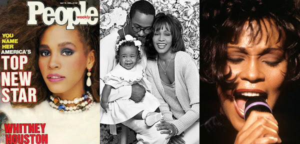 En las imágenes: Whitney en la portada de la revista People durante los años 80. Foto familiar junto a Bobby y su hija Bobbi Kristina e instantánea cantando.