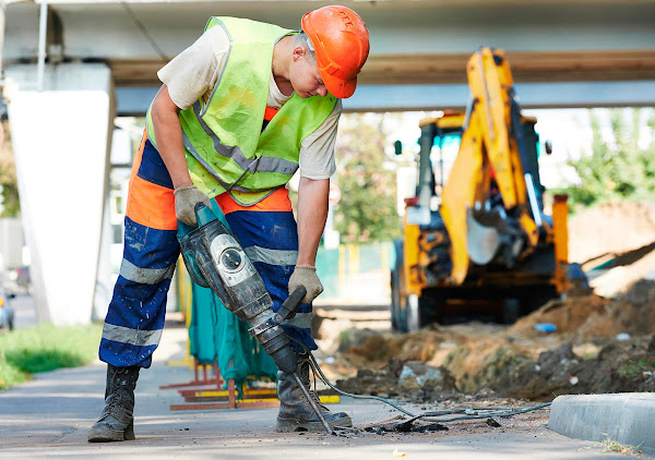 Obrero trabajando en plena calle