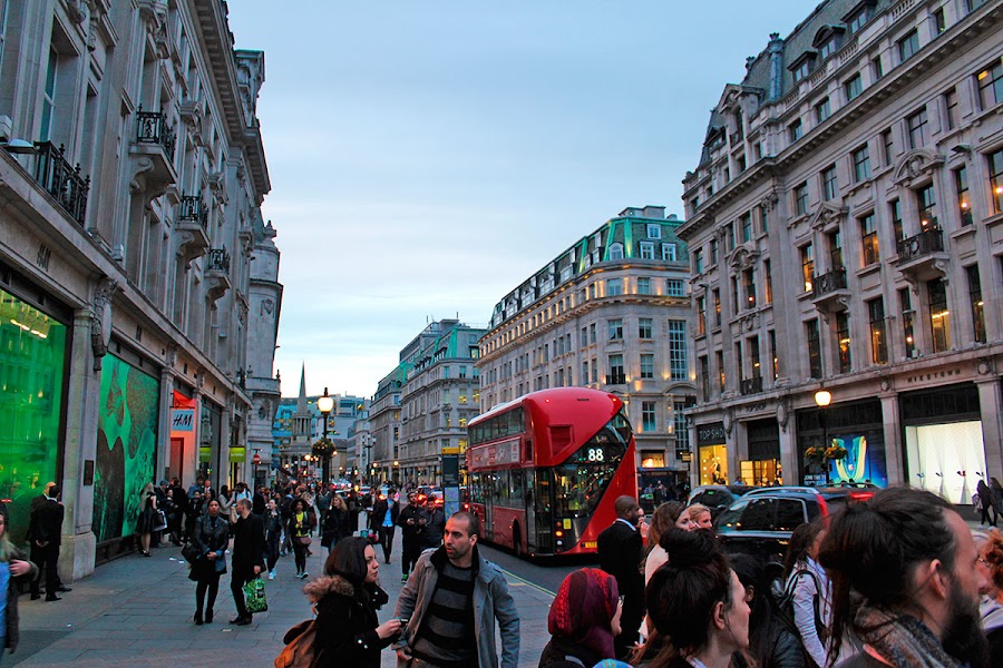 Una vez terminada la compra por fin nos fuimos al centro ¡¡me estaba empezando a desesperar!!. A un solo km teníamos Oxford Street, la principal calle de tiendas y a partir de ahí estábamos en el centro. Sin embargo el centro de Londres no era como esperaba. No habían edificios antiguos ni bonitos. Simplemente hormigón y mas hormigón, edificios modernos y enormes, un Zara detrás de otro, Starbucsks, McDonals los que quisieras, centros comerciales... ¿qué diferencia hay de la Gran Vía de Madrid y esto? que el 70% de los vehículos en circulación son autobuses rojos y taxis. Si no tienes cientos de pounds para gastar en ropa no mola.