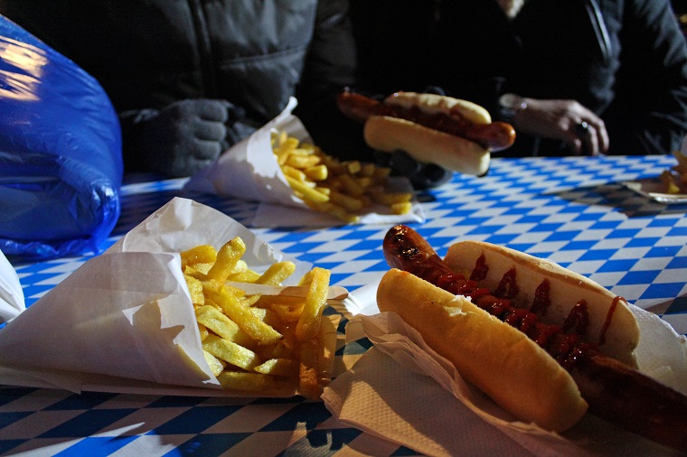 Era como una fantasía, como el sueño de un niño, como un Disneyland pero real. Solo en recorrerlo tardamos 3 horas pero me hubiese encantado subir en cualquiera de las atracciones o haber patinado sobre hielo. Cenamos en una de esas casetas de madera unos perritos con una salchicha alemana enorme y unas patatas fritas. Hacía tanto frío que ni siquiera nos quitamos los guantes para comer y además nos dieron 4 servilletas contadas. Adivina cuánto nos costó la cena entre los 4... más de 50 .
