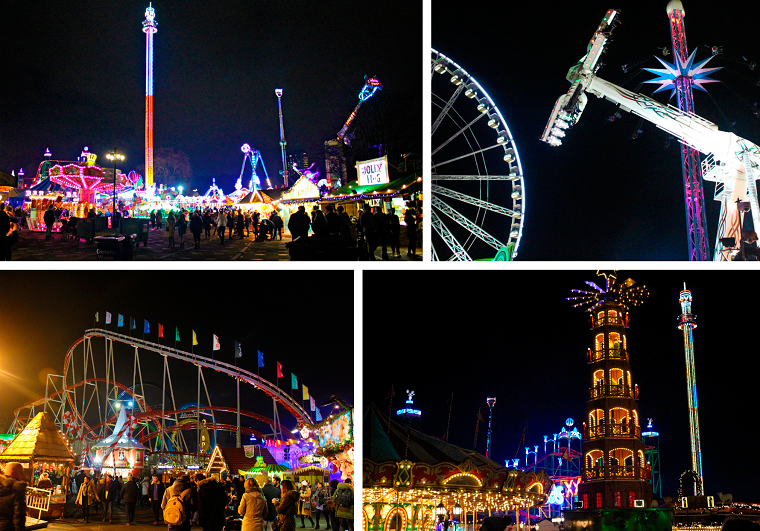 Después fuimos a Hyde Park para ver por fin Winterwonderland y fue la mayor sorpresa de todo el viaje. La verdadera razón por la que debes venir a Londres en Navidad es esta, un impresionante mercadillo navideño típico del centro de Europa, casi más auténtico que los originales. Atracciones de feria más típicas de un parque de atracciones, casetas de madera de la Baviera, carne a la brasa y mucha cerveza, puestos de dulces y gominolas, árboles de navidad, pista de patinaje sobre hielo digna de una postal navideña...