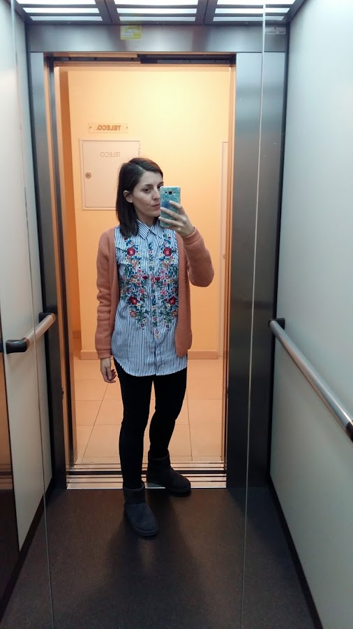 Por fin os puedo enseñar la camisa de rayas con flores bordadas. Es de AliEpress y me costó 11 . Ese día hacía mucho frío, así que me puse capas. Las demás prendas también las conocéis de otros looks.