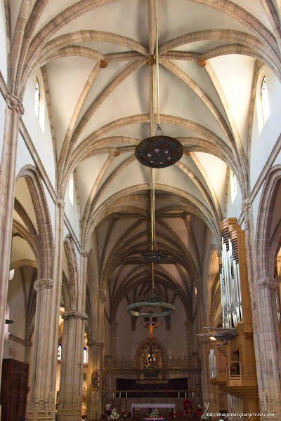Alzada sobre las naves laterales, la nave principal sorprende por la falta del retablo mayor.