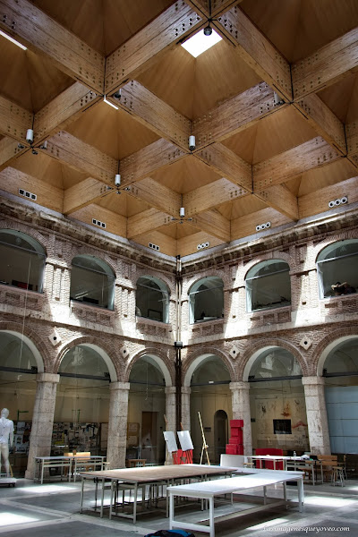 El claustro central, de dos plantas, se ha cerrado con una cubierta de madera acristalada y se utiliza como aula de dibujo y espacio para la realización de actos académicos y culturales. En torno a él se encuentran las aulas.