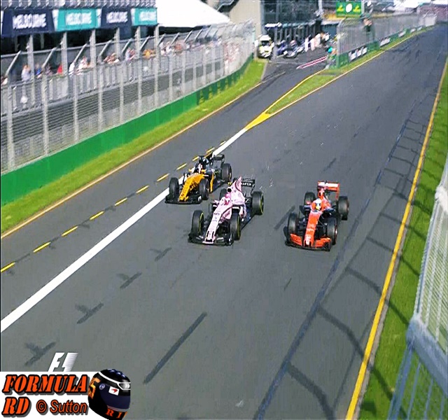 Otro momento épico, fue el del doble adelantamiento a Fernando Alonso, Esteban Ocon y Nico Hulkenberg pudieron superar al español antes de que este abandonara por problemas en sus frenos. Pese a estos adelantamientos espectaculares, el Gran Premio inaugural de la temporada 2017, no fue del todo brillante, y para los no Ferraristas, fue simplemente aburrido.
