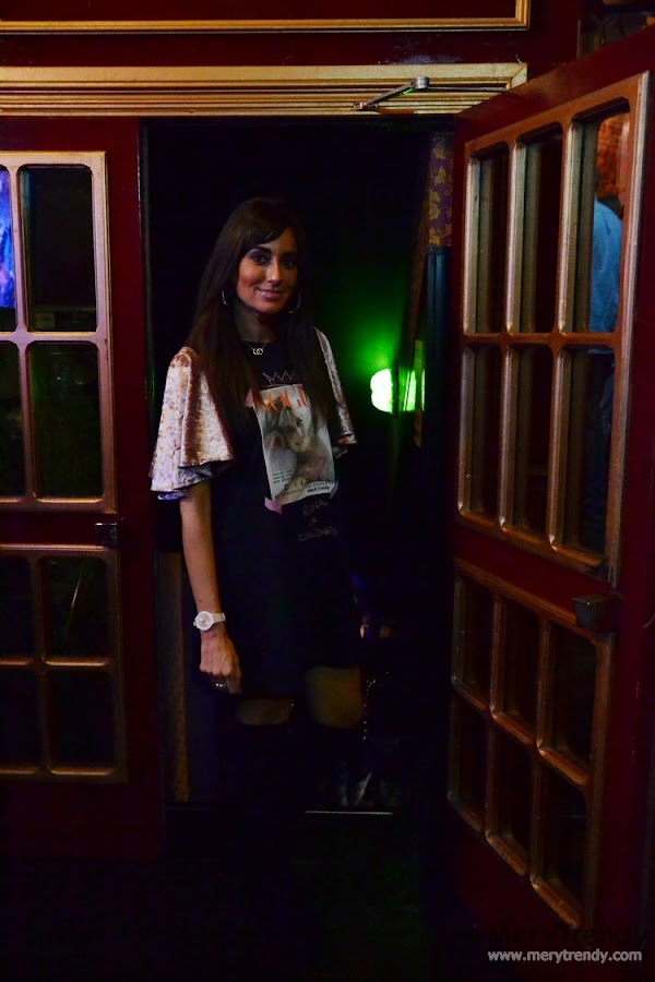 Sin duda, un vestido perfecto para el mejor plan con el que puede soñar una melómana como yo: presenciar en vivo y en directo las actuaciones de 5 grupos que se reunieron por última vez en el célebre local ovetense para acercarnos al público allí presente sus grandes temas; todo ello en la mejor compañía, con un lleno de ojos y oídos bien abiertos... Jijiji.