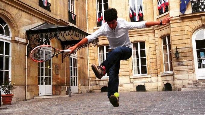 Este joven serbio de 26 años abandonó el cara a cara en la pista de tenis por la libertad de la calle, se llevó su pelota y su raqueta de paseo por el mundo. En el tenis de estilo libre vale todo: el marco de la raqueta, el cuerpo, el entorno… la cuestión es el ritmo y que la pelota no caiga.