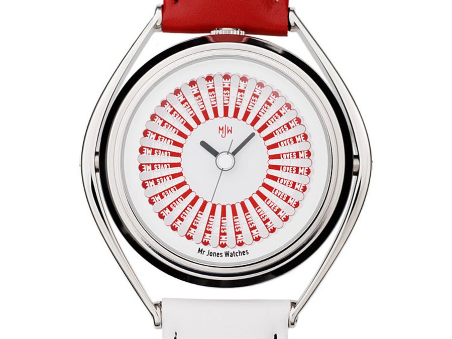 "Me quiere, no me quiere, me quiere, no me quiere..." ¿Cuántas veces hemos jugado a esto con una flor en nuestras manos? Si eres de los que siempre ha odiado que te saliese un 'no me quiere', entonces este reloj es para ti. Fabricado por Mr Jones Watches, este modelo te dirá siempre que tu pareja te ama locamente. ¡Piensa que siempre se acordará de ti cada vez que gire la muñeca!