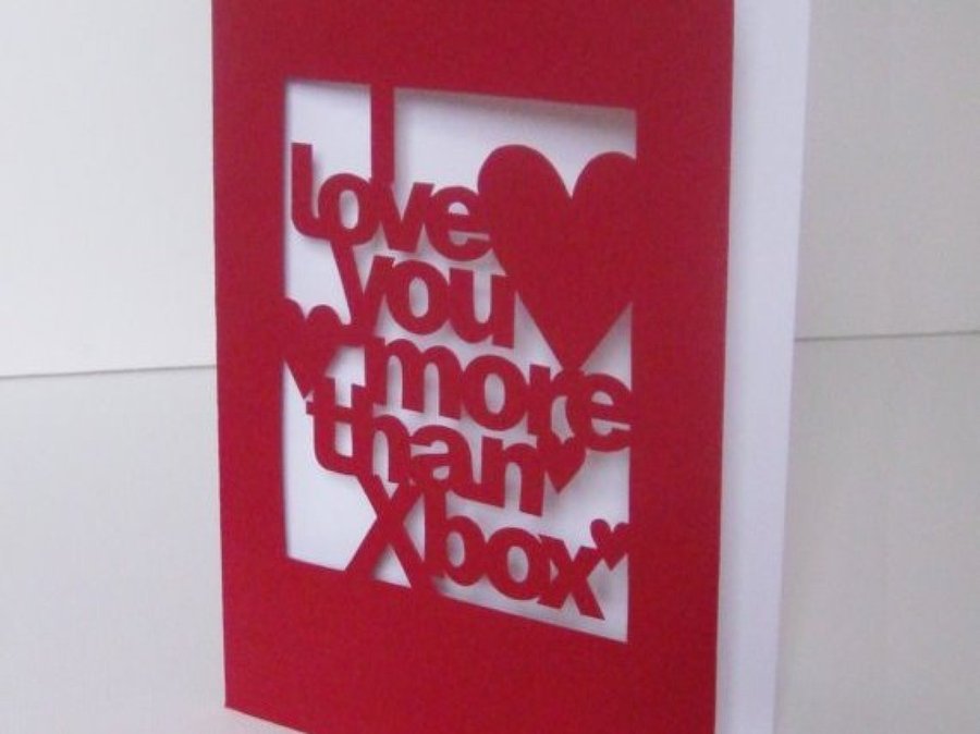 Si eres de esas personas que en San Valentín simplemente quieren tener un detalle con su pareja, una tarjeta puede ser una buena forma de resolver el compromiso. Eso sí, no vale con elegir cualquiera llena de cachorritos u osos amorosos. Nosotros te proponemos algo más original: una tarjeta grabada con la frase "te quiero más que a mi Xbox". Una confesión de amor en toda regla para alguien que no puede vivir sin su videoconsola.