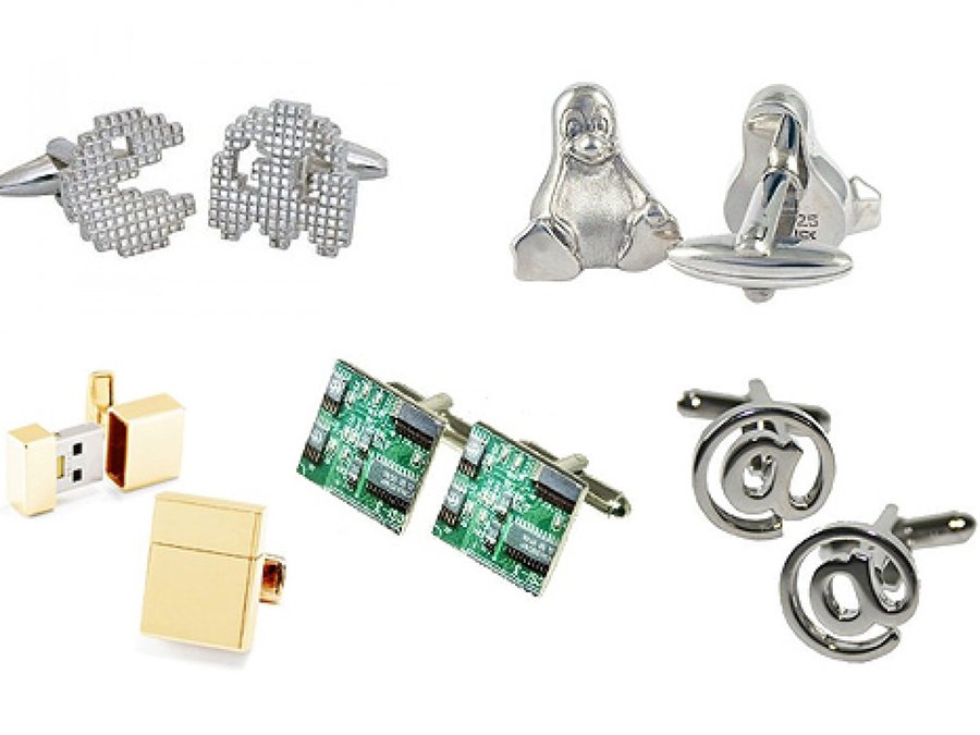Además de la corbata que te hemos propuesto más arriba, tampoco puedes olvidarte de otro complemento imprescindible para todo aquel que trabaja en traje: los gemelos. Aquí tienes una variedad enorme para elegir: hay modelos para los amantes de Linux, para los incondicionales de Apple, para los nostálgicos del Pacman y, por supuesto, hay gemelos que incorporan memoria USB. ¿Quién dijo que es difícil ser original?