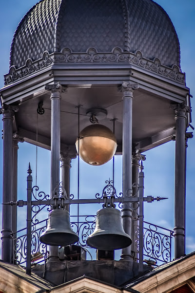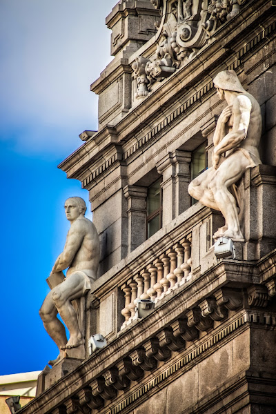En cuanto a técnica fotográfica este post y los restantes de la serie son una exposición fotográfica del trabajo que se puede hacer con un zoom 70-300 mm, en la que no haré comentarios del contexto, pero sí que te mostraré cada edificio, para que te sitúes, así como el detalle de lo que hay en sus alturas. Respecto al uso del zoom, además del acercamiento al detalle podrás ver el precioso efecto de la reducción de la profundidad de campo que se produce cuando usas una distancia focal muy larga, en el que todos los componentes de la fotografía parecen estar en el mismo plano, aunque se encuentren separados entre sí.