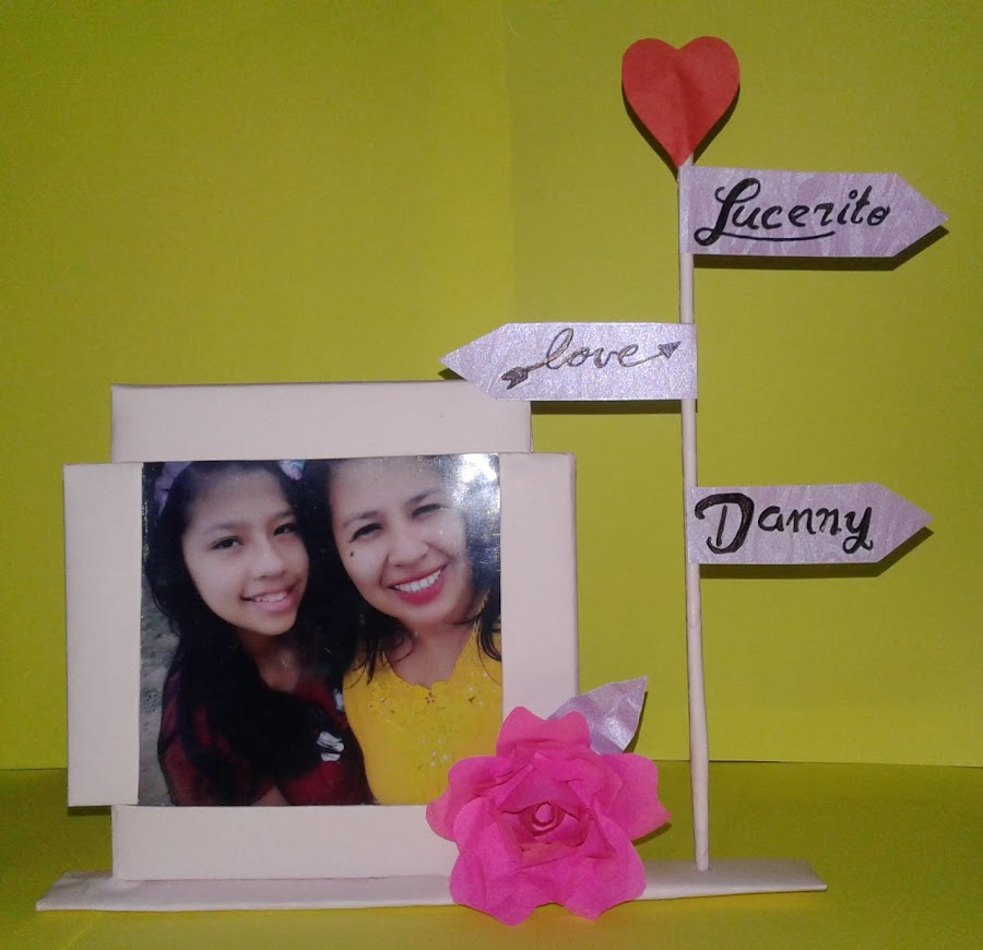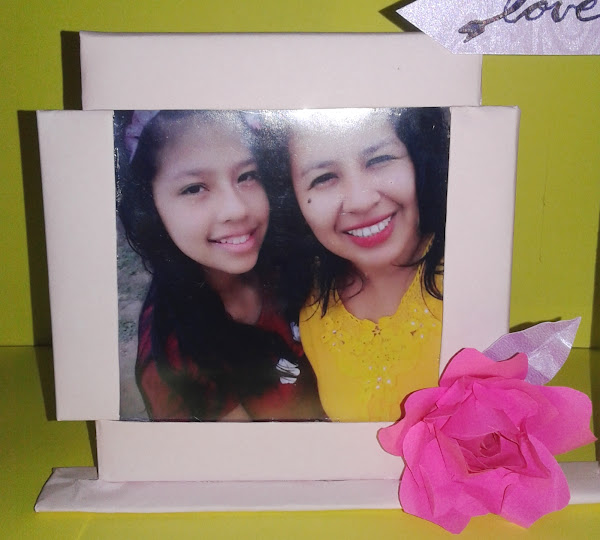 Como me encanta todo lo que tenga que ver con manualidad de papel, decidí elaborar un portafoto acompañado de flechas Cartel y adornado con flores, algo que transmita amor, así que, que mejor la foto de una madre con su hija... Un portafoto muy práctico para colocar en tu lugar especial.