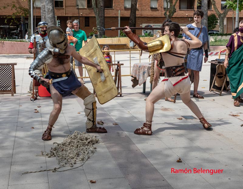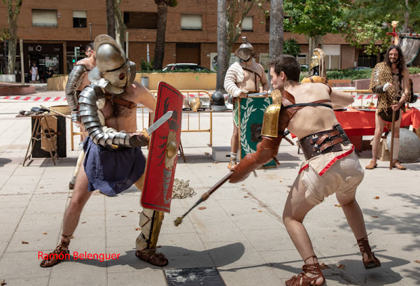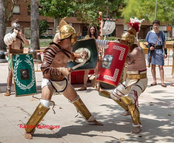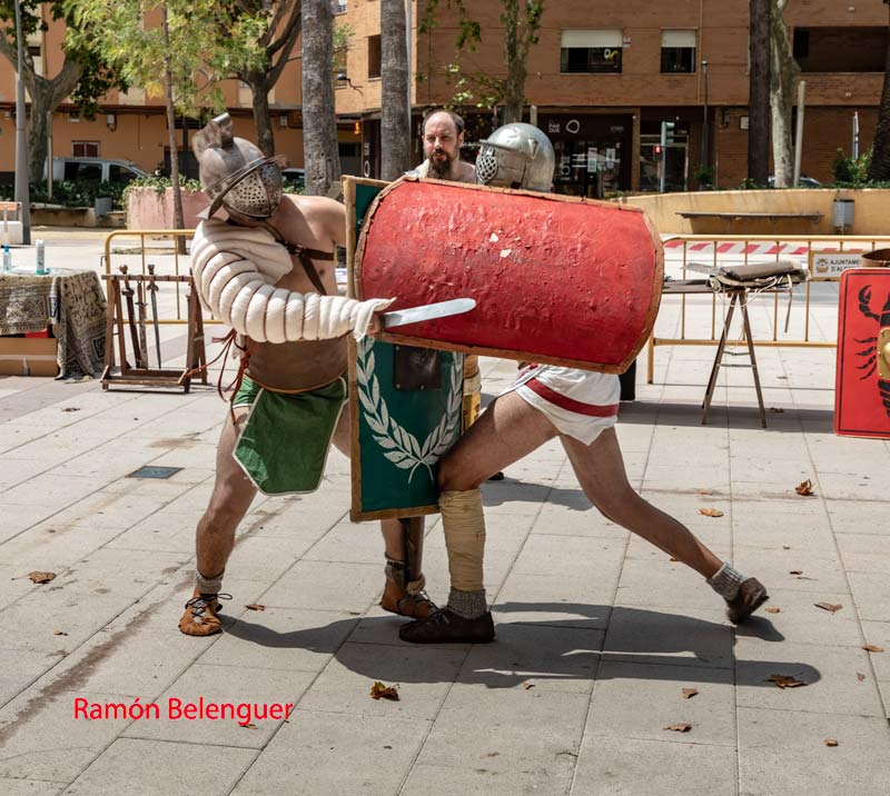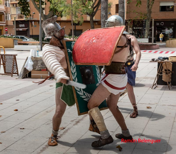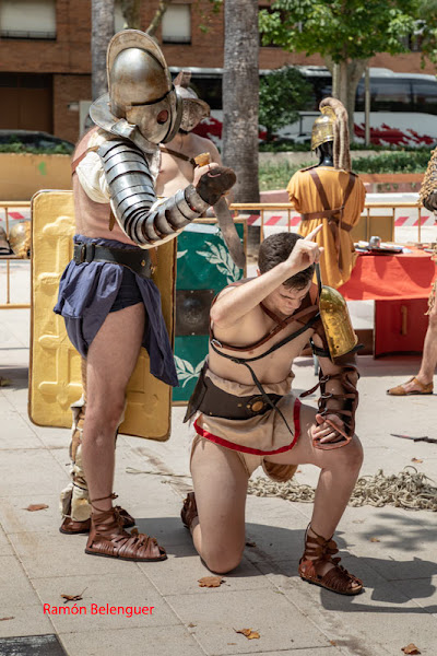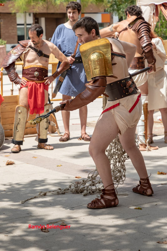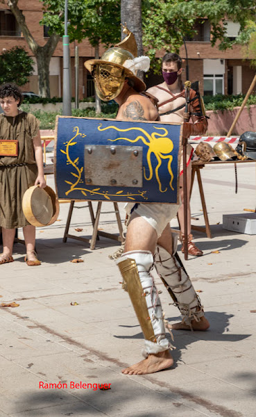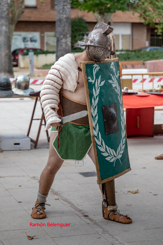 Hoplomachus: estos gladiadores llevaban armadura completa, lanza y escudo, asemejándose en apariencia a los hoplitas griegos. Oponente: Murmillo