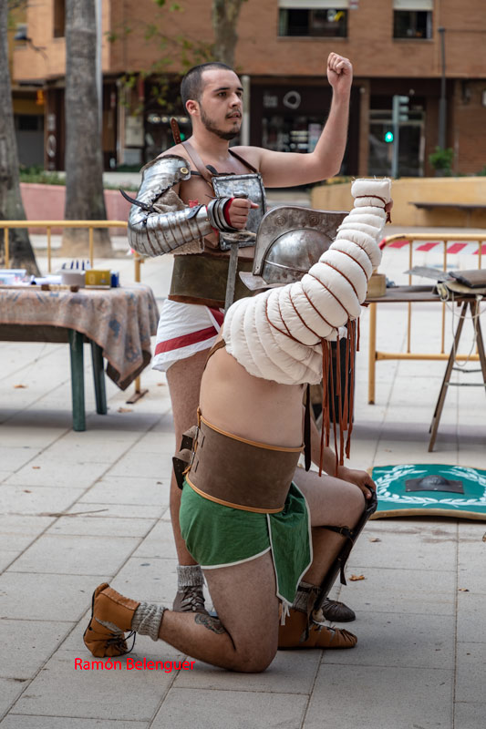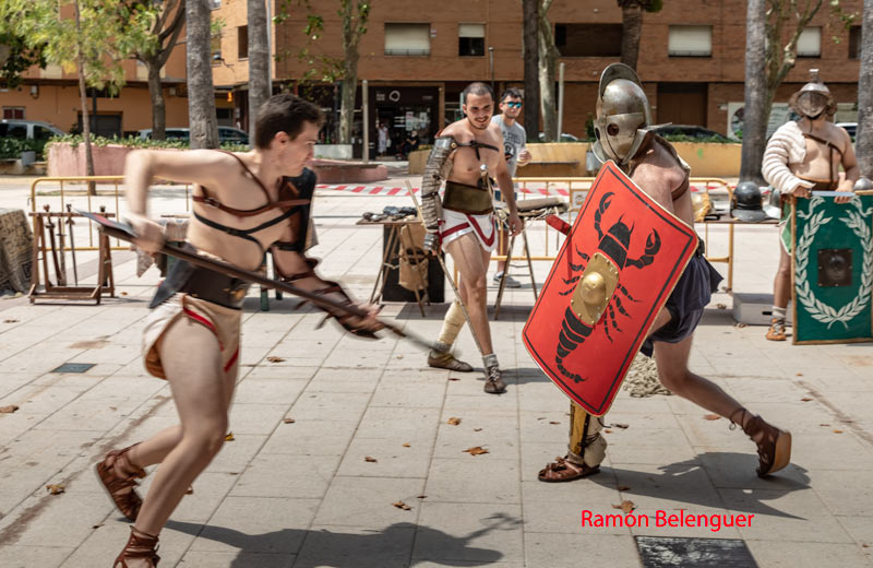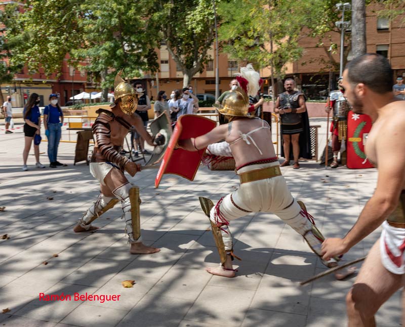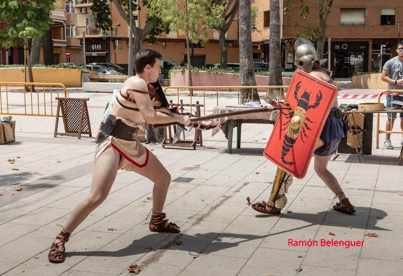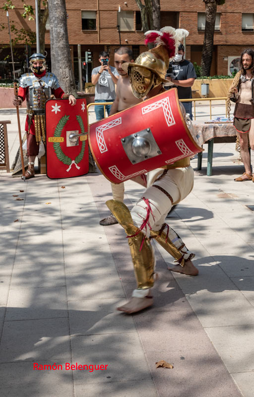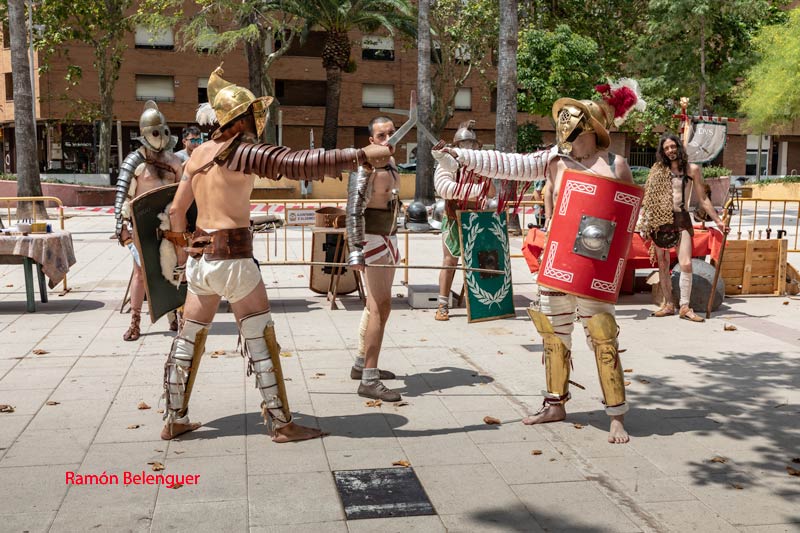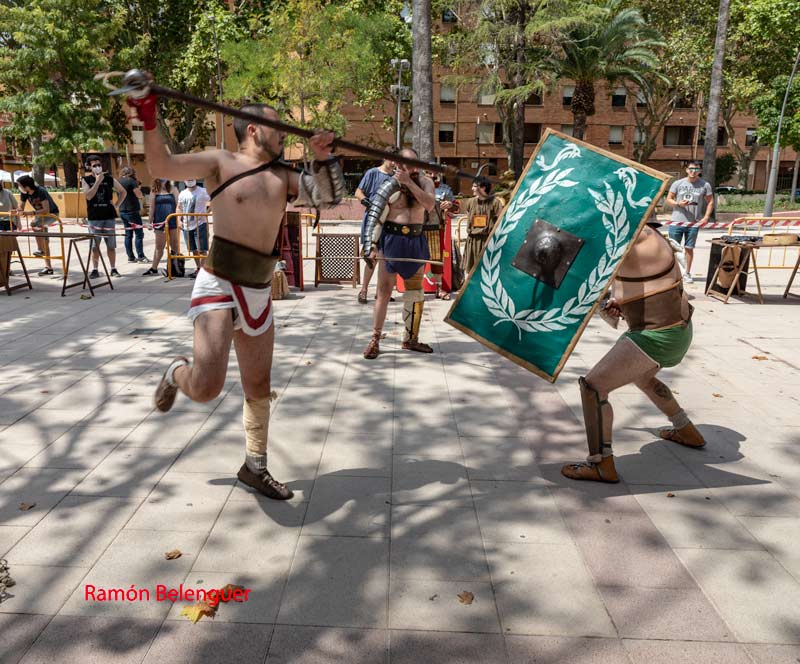 Hoplomachus: estos gladiadores llevaban armadura completa, lanza y escudo, asemejándose en apariencia a los hoplitas griegos. Oponente: Murmillo