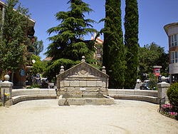 El conjunto se completa con un pilón rectangular, alimentado por dos caños. En 198, la fuente fue trasladada de lugar, para ocupar el centro de una rotonda urbana, bautizada como Plaza de El Caño. Al mismo tiempo, le fueron añadidas dos extensiones laterales semicirculares, diseñadas por el pintor Manuel López-Villaseñor, en las que, a modo de exedra, se dispusieron asientos.