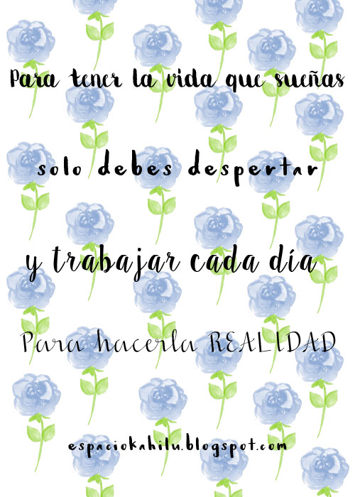 Y aqui les dejo el mio para hoy, para recordarles que se puede soñar, soñar en grande pero mantenernos siempre despierta trabajando y construyendo ese sueño.