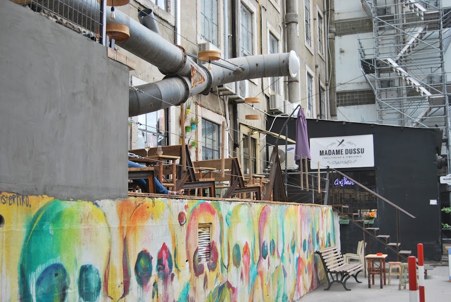 Así que este verano que hemos vuelto a Portugal, no podía dejarlo pasar. Es de sobra conocido el estilo y la capacidad que tienen los portugueses para cuidar la decoración al detalle y de verdad que es algo que siempre he admirado de ellos. Por eso son capaces de convertir algo como una vieja fabrica (?) o antiguo almacén en una zona de compras y restauración alternativa tan "cool" que bien podría estar en el centro de Amsterdam o Copenhague.