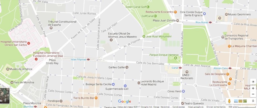A lo largo del paseo de la castellana, izquierda y derecha tenemos casi todas las embajadas de países como Irlanda, Argentina, Estados Unidos, etc.