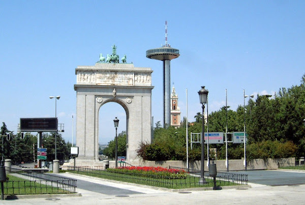 Arco de la Victoria con el faro de la Moncloa al fondo