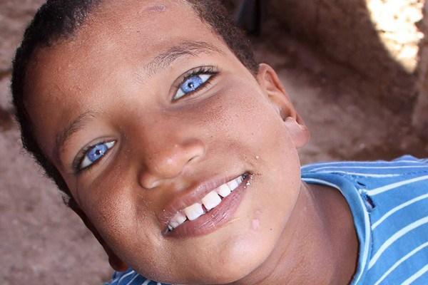 La mirada de este pequeño niño Marroquí es realmente impactante. El tono en sus ojos rompe cualquier estereotipo. Tiene intensamente el color celeste en sus ojos.
