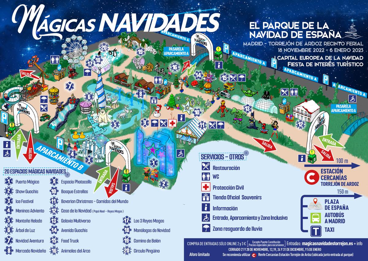 Mágicas Navidades se encuentra en el Recinto Ferial de Torrejón, hay varios aparcamientos en los alrededores del propio recinto ferial, que están indicados.