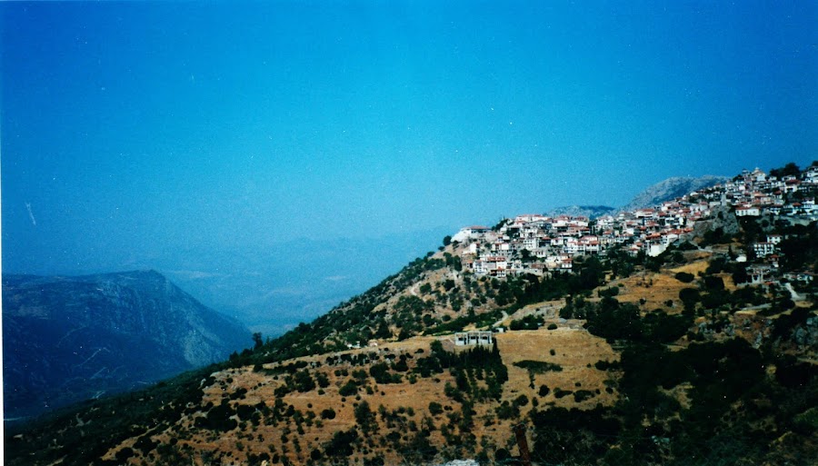 Y vamos a seguir conociendo el país, dirigiéndonos ahora a Delfos. Por el camino vemos pueblos encaramados a las montañas, como el de Vitsa.
