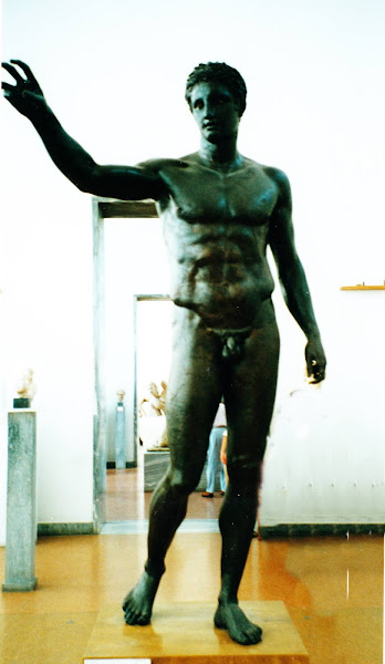 Empezamos por el "Joven de Antikýra, un bronce realmente hermoso que se encontró semienterrado en una isla y mide 2 metros de alto.
