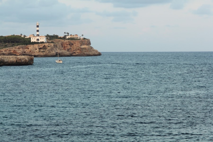 Tras ver esta parte de la isla nos dirigimos a la costa este donde estaba nuestro hotel, se encontraba en un pequeño pueblo de pescadores llamado Portocolom. El establecimiento de tres estrellas se llamaba Bellevue Belsana, lo contraté con todo incluido y aunque no tiene nada que ver con otros en los que he estado, la verdad es que por el precio que nos costó estaba bastante bien. Tenía una piscina bastante grande y una terraza que daba al mar, por las noches te podías tumbar en sus cómodos sillones con un cóctel en la mano y divisar el mar y el precioso faro del pueblo.