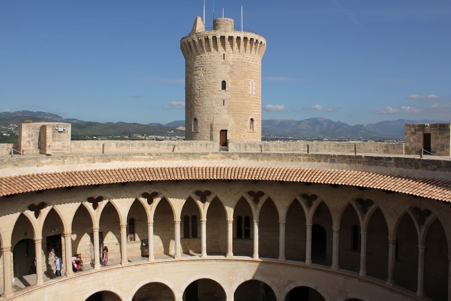 Lo que sí que visitamos fue el Castillo de Bellver, que se encuentra a tres kilómetros de la ciudad de Palma. Se encuentra sobre un monte rodeado de un espeso bosque, pero se puede divisar la Sierra de Tramontana, la ciudad de Palma, así como el puerto. Si lo visitamos fue porque me llamaba mucho la atención es que su muralla y su patio fuera circular. El castillo está estructura en dos platas alrededor del patio central. Dentro del castillo se puede visitar una interesante exposición sobre la isla.