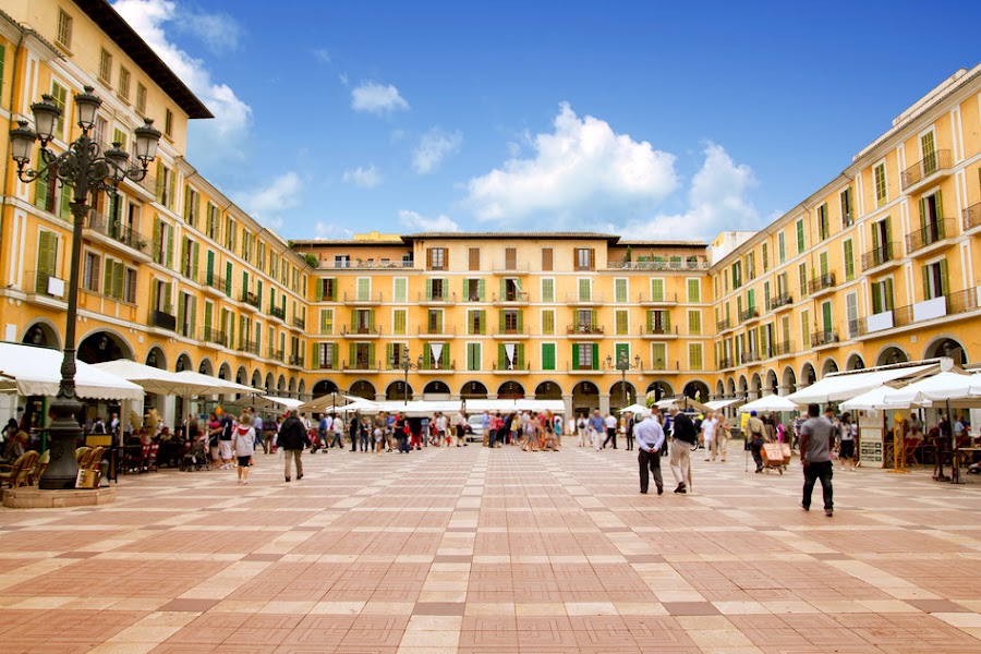 Plaça Major. Plaza rectangular en el centro de Palma. Suele haber mimos, tenderetes, payasos.