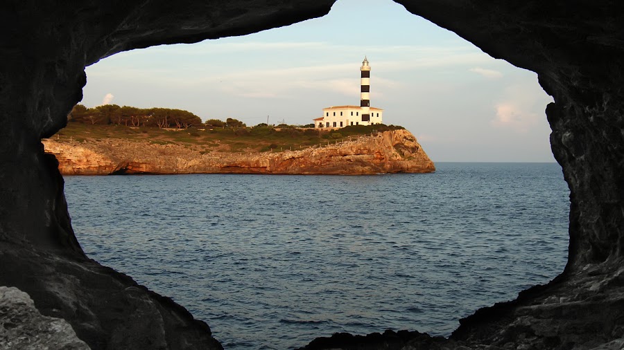 Y ya llegamos a Portocolom, puerto de la ciudad interior de Felanitx, y uno de los mayores puertos naturales de Mallorca. Activo desde el siglo XVII. Su casco viejo está pegado al mar como si fuera una pequeña Venecia. Fantástico entorno en el que se puede disfrutar del snorkeling. Andando podemos llegar a su emblemático faro, uno de los más fotografiados de la isla con sus franjas azul marino y blancas. Corona el acantilado de Sa Punta. Por la zona numerosas calas.