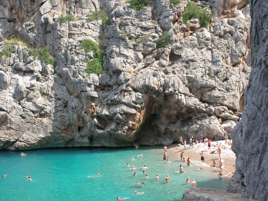 Y ya si no queremos desviarnos un poco para ver el pueblo de Deyá llegamos a Soller y Puerto de Sóller. Nosotros hicimos la típica excursión de autobús hasta cala de sa calobra, super llena de turistas, para llegar a la cala hay que atravesar un túnel. Se supone que después de un tiempo allí te montas en barco hasta el Puerto de Sóller y desde allí un autobús te lleva a Soller para coger su famoso tren. Si vais en coche mejor ir muy temprano sobre las 8 de la mañana porque a las 10 está todo lleno. Carretera a Sa calobra.