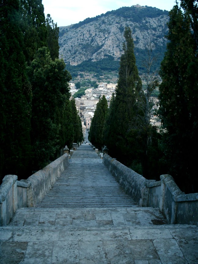En Pollença,a parte de su plaza mayor una de las visitadas obligadas es hacer la subida del Calvario, una hermosa escalinata compuesta de 365 escalones, uno por cada día del año, y en cuya cima hay una sencilla ermita y, lo mejor de todo, una extraordinaria vista de todos los alrededores.