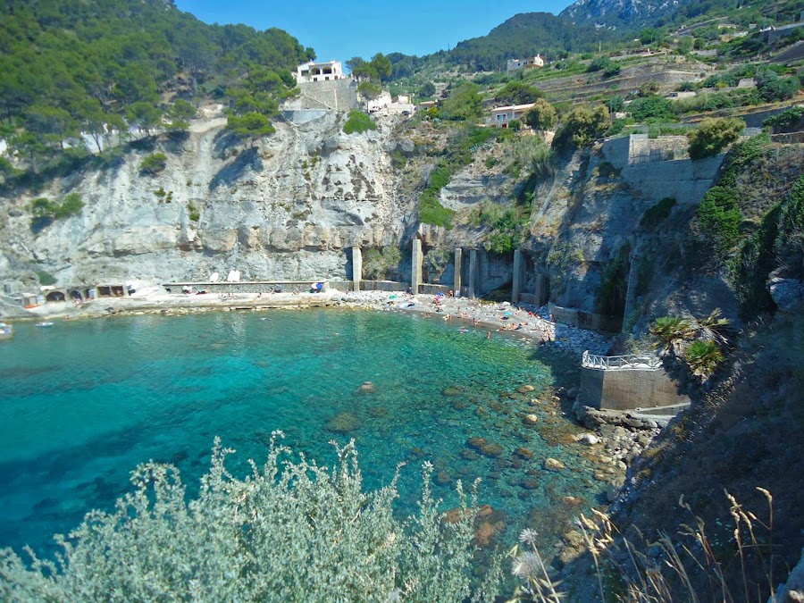 Una cala que nos encontramos más hacia el norte es cala banyalbufar, con una cascada de agua dulce en el centro de la playa, playa de piedras y de aguas profundas, su acceso es facil por una escalera. Aunque hay muchas pendientes.