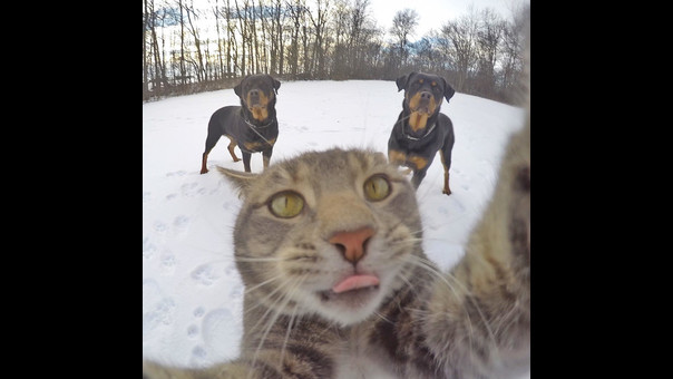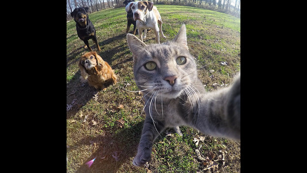 Manny es un gato al que le encanta tomarse selfies, o al menos acariciar la cámara GoPro de su dueño.