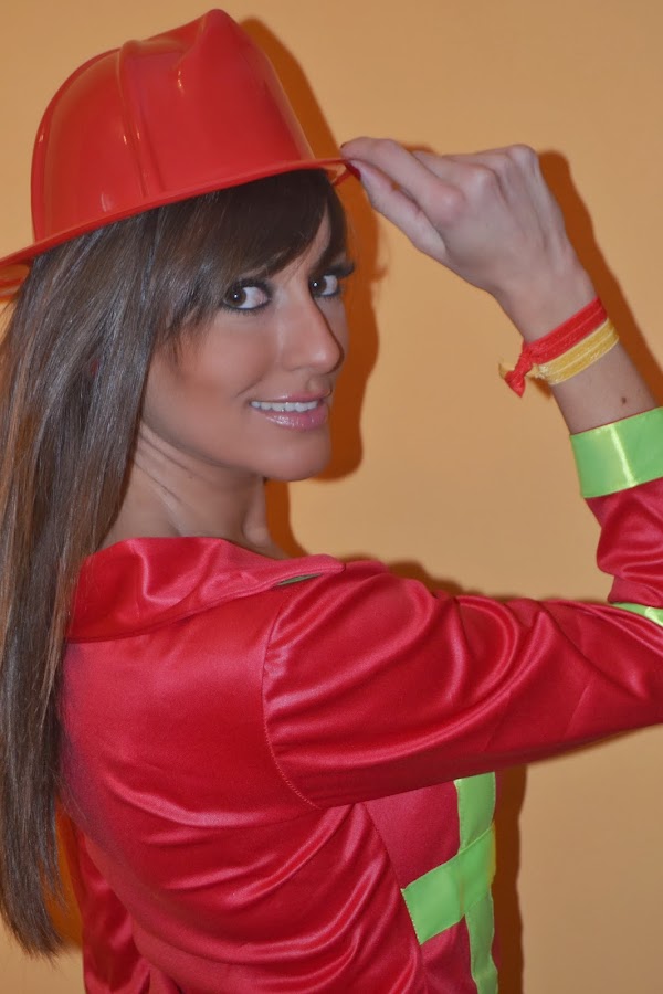Esta vez, me enfundé en un disfraz de bombera que había comprado en Juguetos hará unos mil años (lo de coser nunca ha sido lo mío, lo confieso) y que tenía muerto de risa en el baúl de los disfraces.