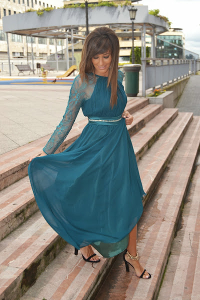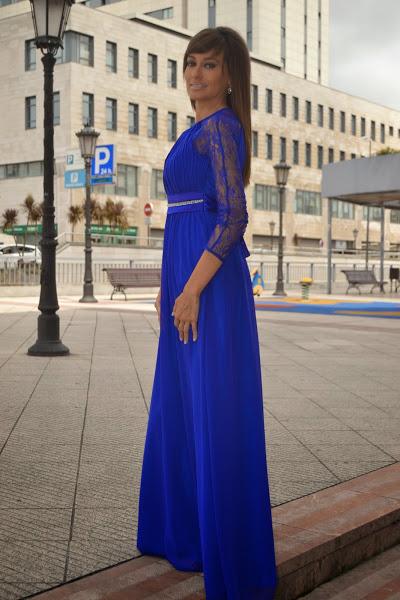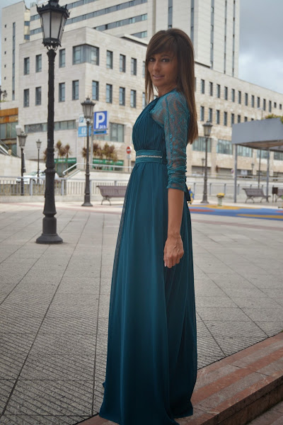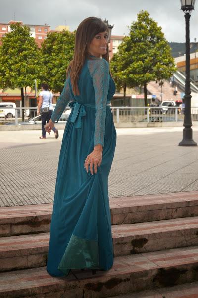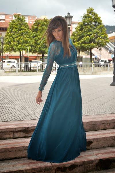 Hoy os presento una muestra "recién salida del horno" de lo que llegará a tienda los meses venideros. Se trata de dos vestidos largos, y de manga larga, idénticos, uno en verde botella y otro en azul elétrico, en una línea super femenina, con telas de gran caída, transparencias de puntilla en la misma tonalidad, siguiendo la tendencia del color total, e impregnados de detalles que marcan la diferencia y los hacen sofisticados y elegantes.