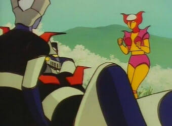 Y precisamente en aquel episodio Sayaka sale a la lucha pilotando a Mazinger Z supliendo a Koji, al final es en equipo como derrotan al enemigo, comprendiendo el papel que ambos tienen en la lucha.